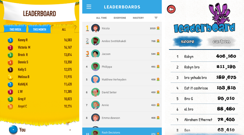 Leaderboards are a game element that shows where players are ranked in the system.